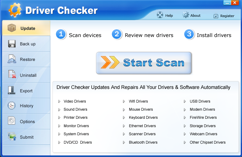 Driver Checker is designed to effectively detect the outdated or broken device drivers and satisfy the application upgrade requirements if you can not find the new versions available from the original manufacturers. Driver Checker can deep scan your hardware devices, detect and update the outdated drivers if available, completely backup them and restore them if necessarily; You can also uninstall the drivers completely on demand. Driver Checker does all of these through the easy-to-use interface and makes your system running more secure, stable and always up-to-date.