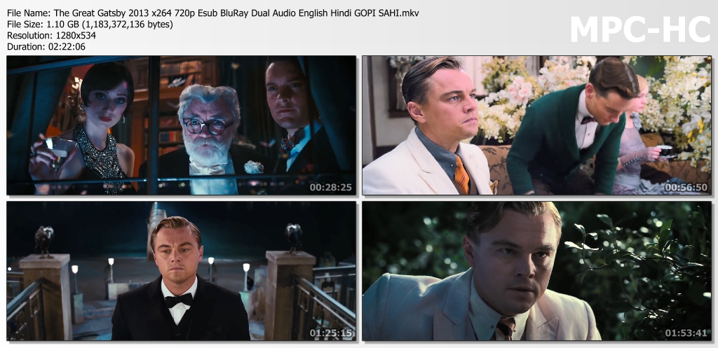 - The Great Gatsby 2013 x264 720p Esub BluRay Dual Audio English Hindi GOPI SAHI.mkv (1.1 GB)