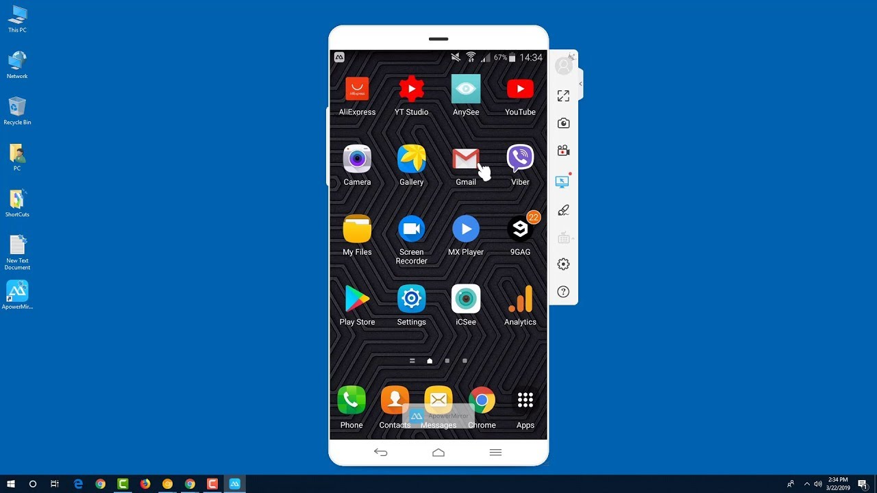 ApowerMirror enables you to control your Android from a PC seamlessly. Easily manipulate a phone's screen with your mouse and keyboard, including WhatsApp messages and SMS text messages. Game lovers can play Android-based games on their computer without an emulator and without rooting the device.