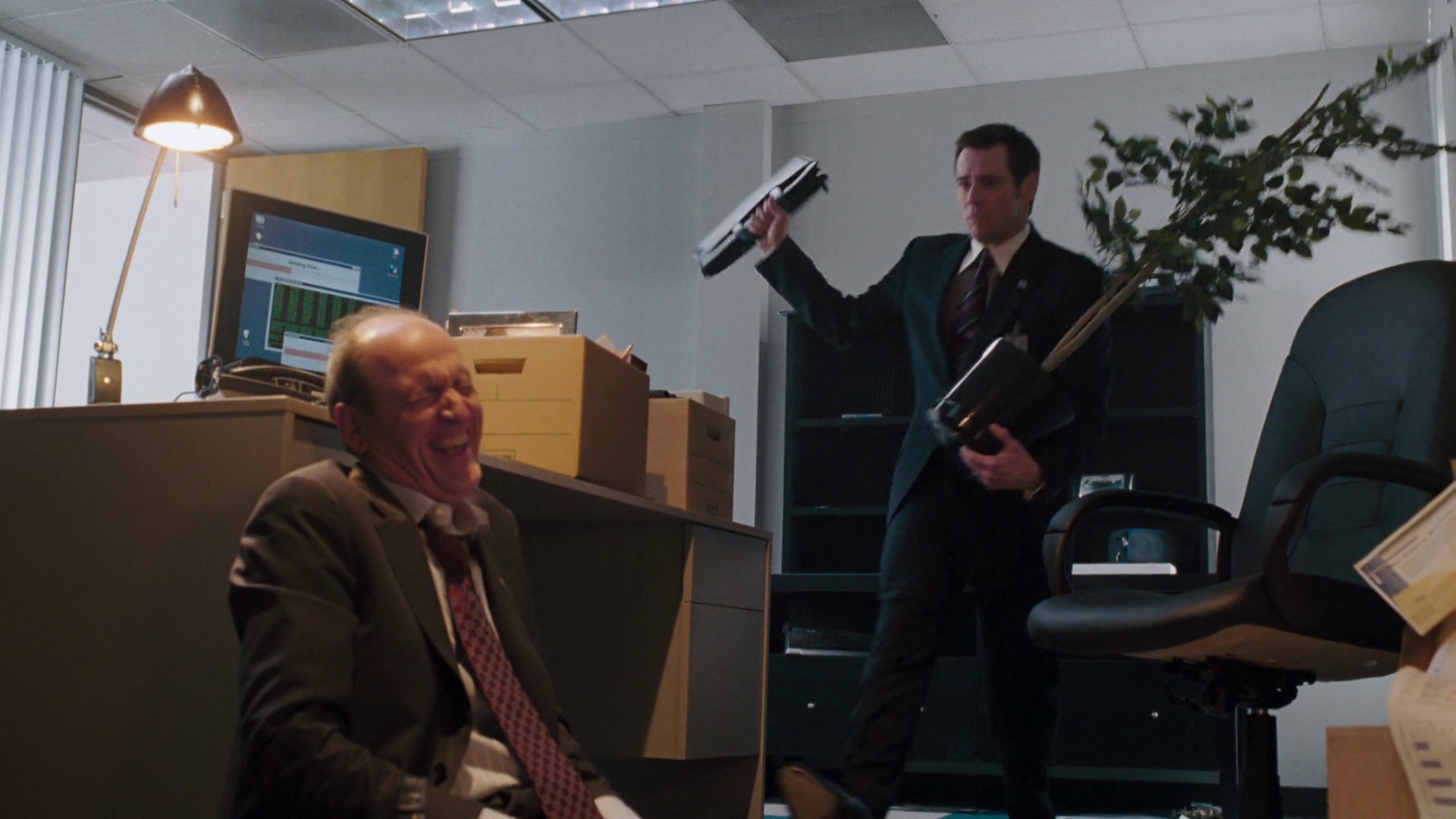 After losing their high-paying corporate jobs, Jane and Dick Harper (Jim Carrey and Téa Leoni) turn to robbing banks to maintain their upwardly mobile standard of living in this action-comedy based on the 1977 film of the same name. The couple's hold-up act begins as a desperate measure. But before long, they're actually enjoying it -- and now it's getting to be a habit.
