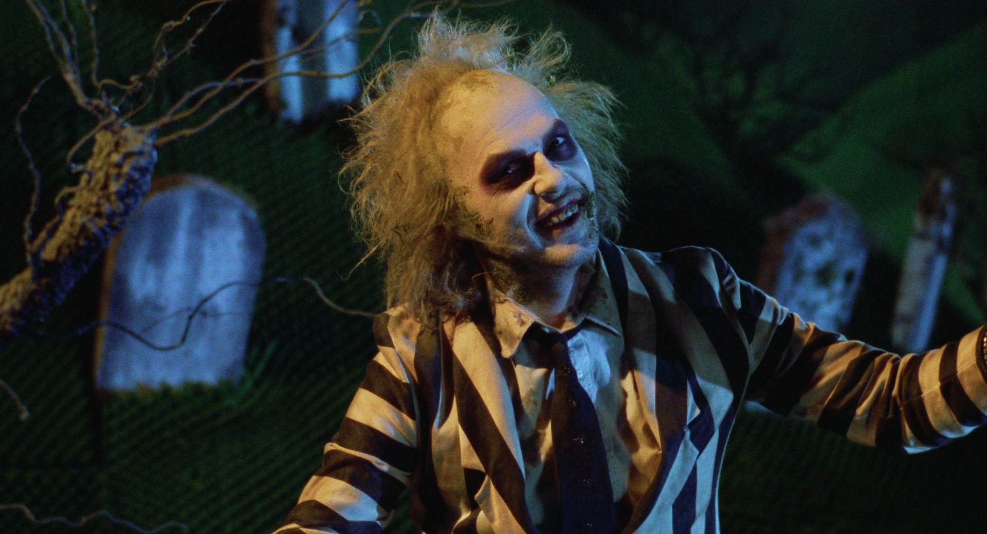 Beetlejuice (1988), directed by Tim Burton, custom SDR trimpass from the 4k HDR remaster, encoded in 10 bit HEVC with AAC sound, including 7.1 remaster, original theatrical Dolby Stereo, isolated 5.1 score, Jaboody Dubs riff commentary, and subtitles in thirty-four languages.